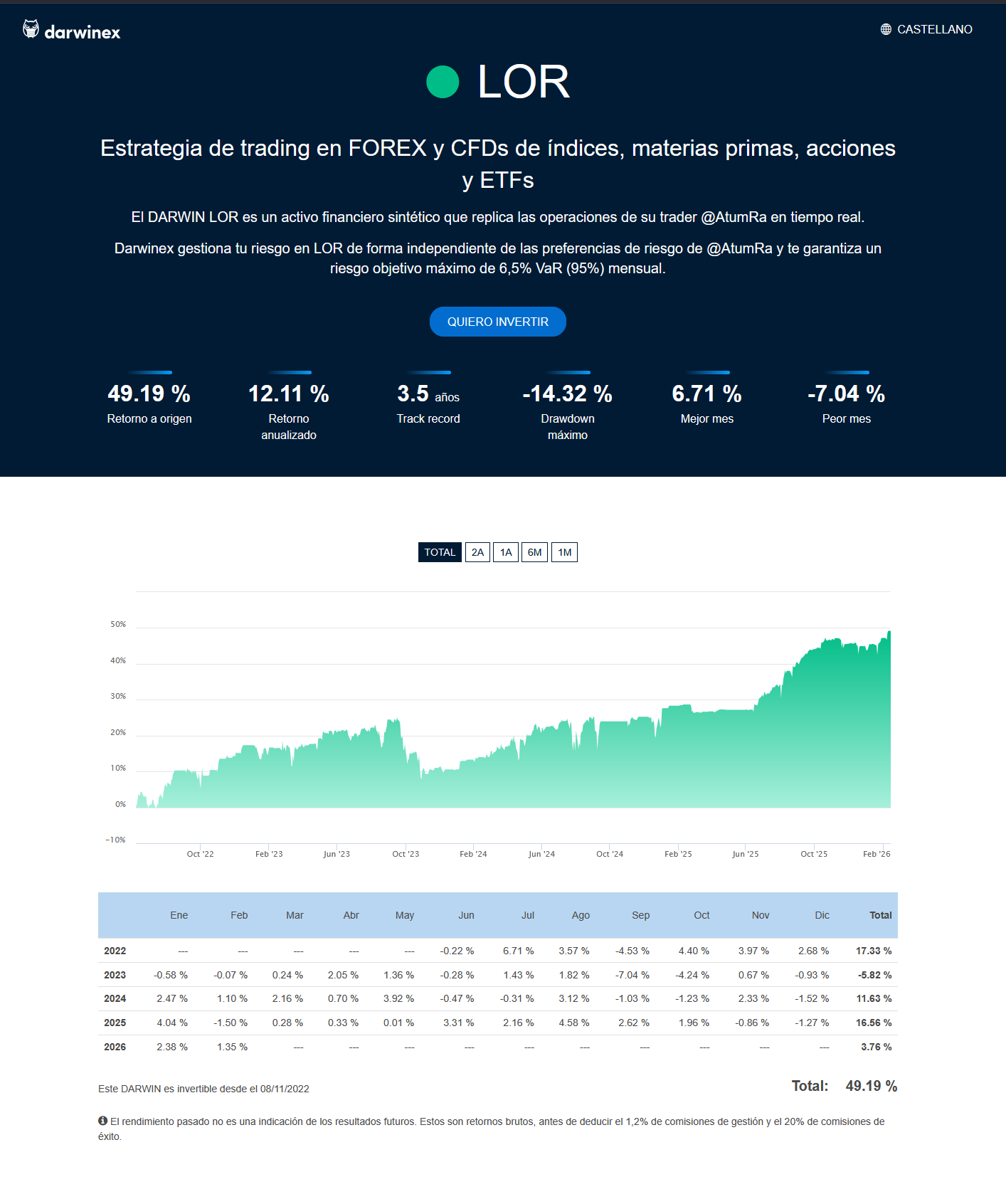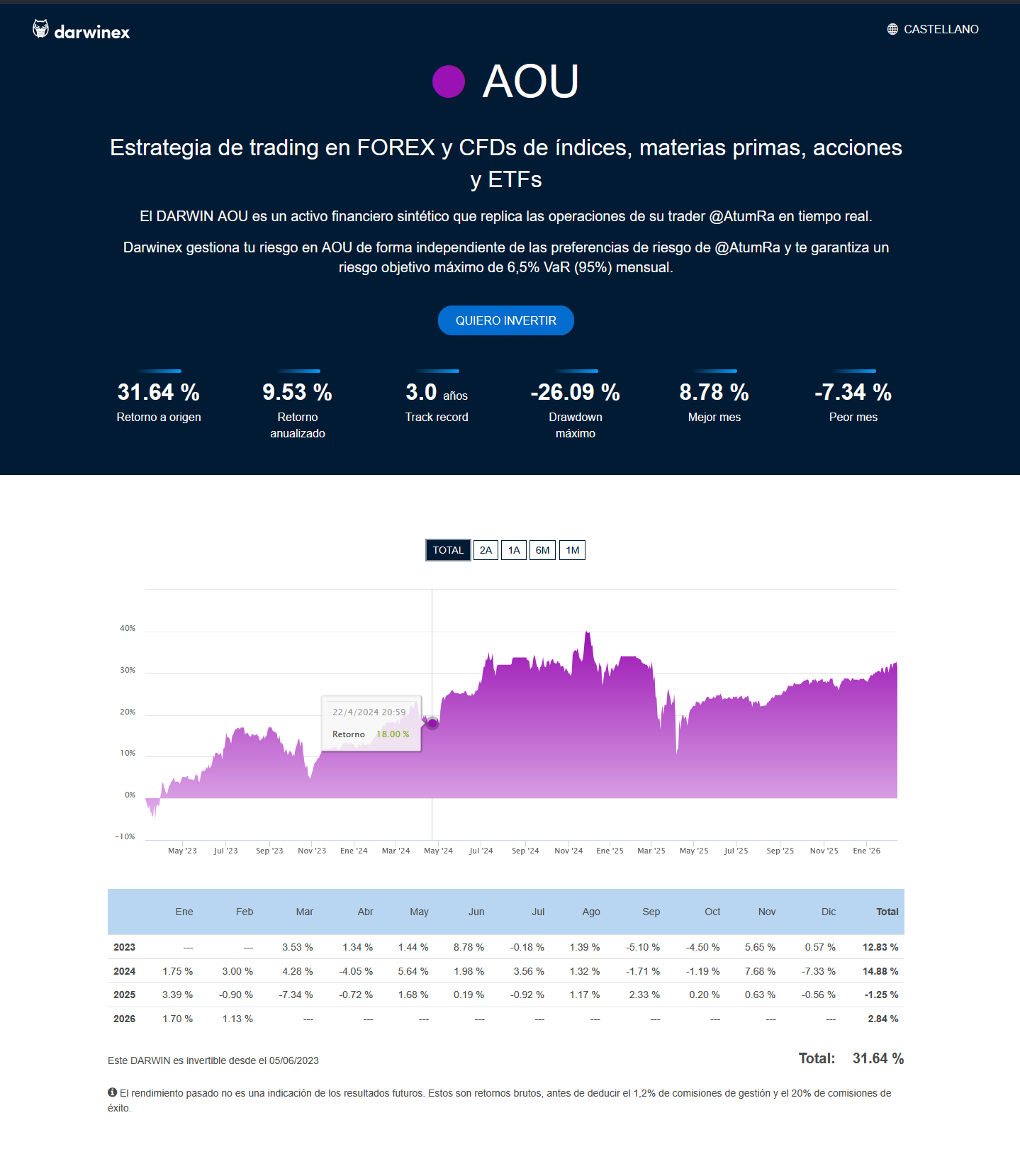 Vehículo de inversión en el bróker Darwinex.