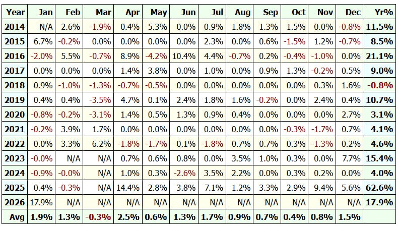Backtest: Enero 2014 – Enero 2026 (12 años)